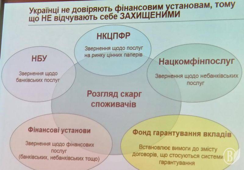 «В конфліктах з фінансовими установами українці залишаються абсолютно незахищеними. На сьогодні такі спори може вирішувати лише суд. Але, за результатами досліджень, тільки 10% українців довіряють унраїнській судовій системі. Тому установа фінансового омбудсмена - це інституцїя, яка дуже потрібна українцям сьогодні, Вона буде допомагати вирішувати спори у позасудовому порядну. І ці спори будуть вирішуватись швидко та справедливо», - підкреслює Тетяна Бурак, експерт Проекту USAID «Трансформація фінансового сектору».