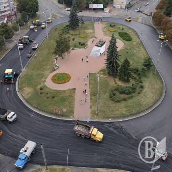 На місці працюють дорожники, зняли старий асфальт і вкладають новий.