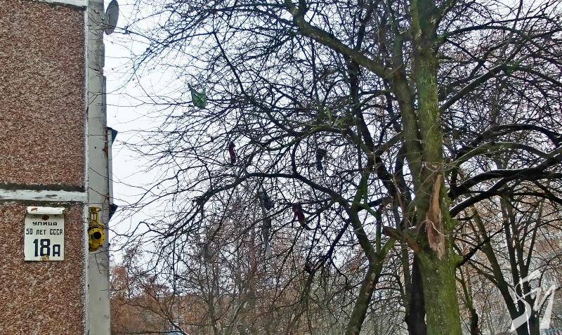 Це дерево бажань. Захотів, наприклад, нову білизну під Новий рік - стару викидаєш на ялинку-яблуню