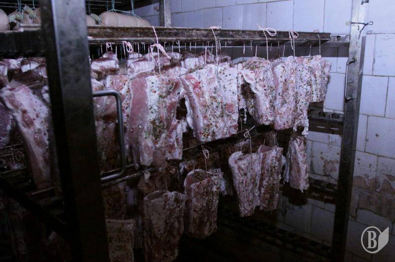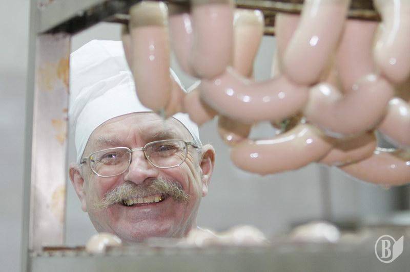 Журналісти здійснили екскурсію по м’ясокомбінату, побували в цеху, де м'ясо відділяється від кісток, і там, де набиваються сосиски і шпикачки. Побачили, де ковбаса вариться, а потім – охолоджується.
