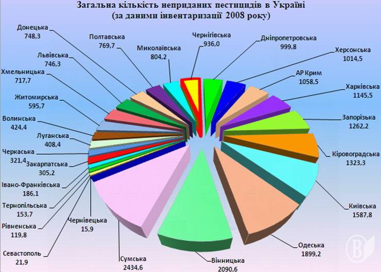 Начиная с 2004 года, за счет средств областного Фонда охраны окружающей природной среды (ООПС) обезврежено 183,62 тонны непригодных пестицидов. В 2008 году обезврежено 49,34 тонн пестицидов, чем удалось полностью освободить 22 места хранения. В текущем году из вышеуказанного Фонда выделено 1060 тысяч гривен на проведение утилизации пестицидов. Запланировано к уничтожению 52,5 тонны из 18 мест, где пестициды хранились в крайне неудовлетворительном состоянии. Такие работы будут проводиться в 11 районах области.
