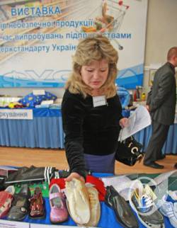 Представляє неякісні товари на Всеукраїнській виставці начальник науково-випробувальної лабораторії харчової продукції та продовольчої сировини державного підприємства “Чернігівстандартметрологія” Наталія Коновець.