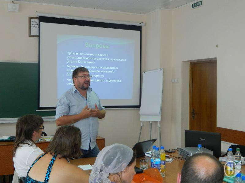 В ході навчання з планування, організації та проведення адвокасі компаній Віктор Мозговий, керівник організації інвалідів «Конкордія», допоміг учасникам тренінгу сформулювати ряд нагальних проблем та навчив, як знаходити шляхи їх вирішення. Питання, що обговорювались, досить різноманітні: від сумнозвісних пандусів, більшість з яких не є придатними для використання інвалідами-візочниками, до можливих шляхів впровадження інклюзивної освіти дітей-аутистів.