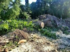 Тепер на їхньому місці залишились лише величезні пні та з’явились кілочки з натягнутою ниткою (таку «розмітку» використовують при будівництві).