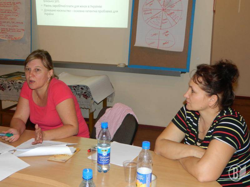 Тетяна Бібік, тренер проекту, за допомогою інтерактивних вправ допомогла учасницям підвищити чутливість до широкого кола гендерних питань на особистісному, міжособистісному, інституційному та суспільному рівнях. Жінки пробували себе у різних ролях, вчились управляти відносинами та ситуаціями, пов’язаними з ґендером.