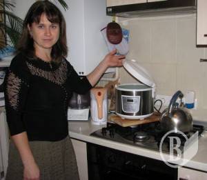 Олена Горбонос розповідає та показує як у мультиварці готує їжу в своїй багатодітній родині. А також демонструє як за допомогою електродуховки обігріває кухню та частину коридору.