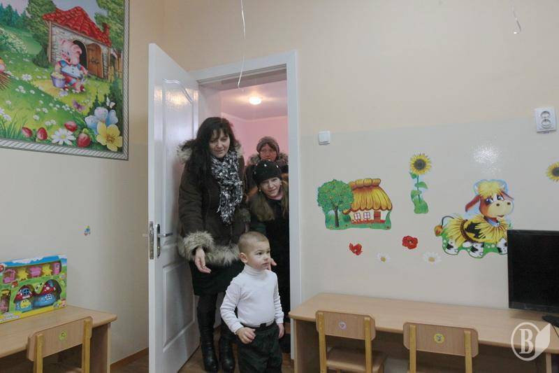 Після урочистого відкриття керівник області ознайомився з матеріально-технічною базою дошкільного навчального закладу «Перлинка», оглянув кімнати, поспілкувався з вихователями та подарував садочку телевізор.