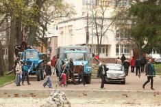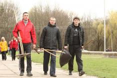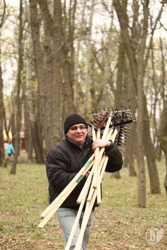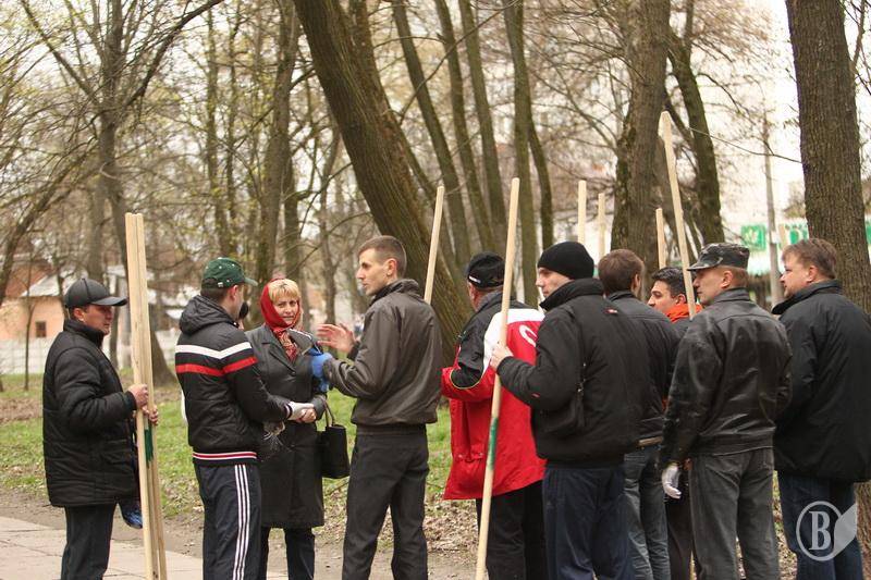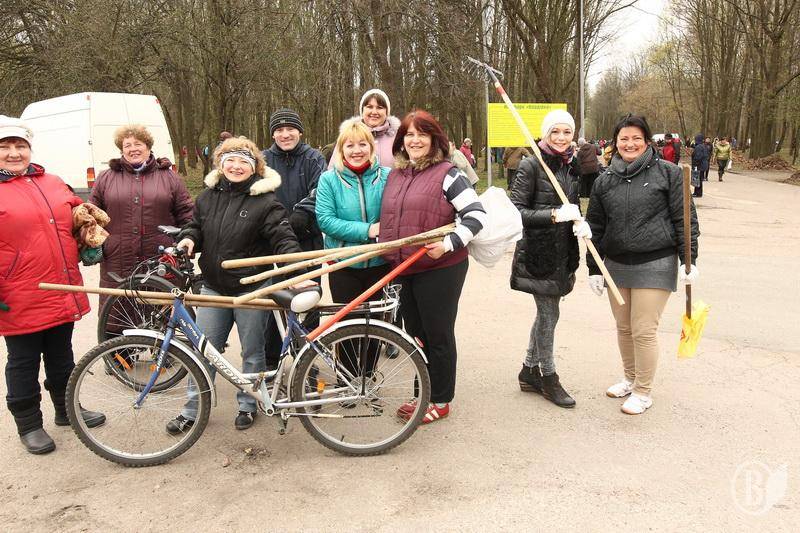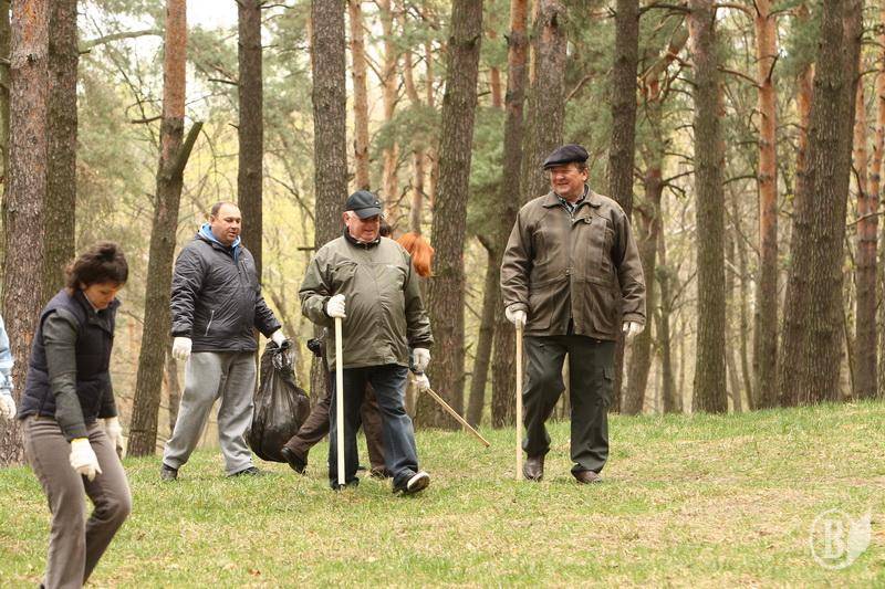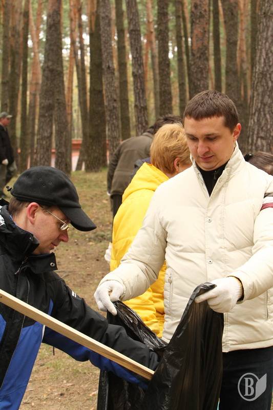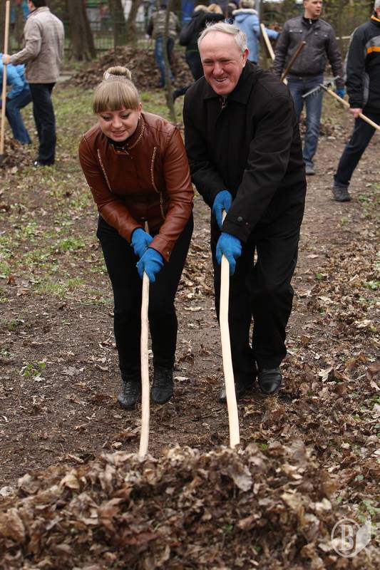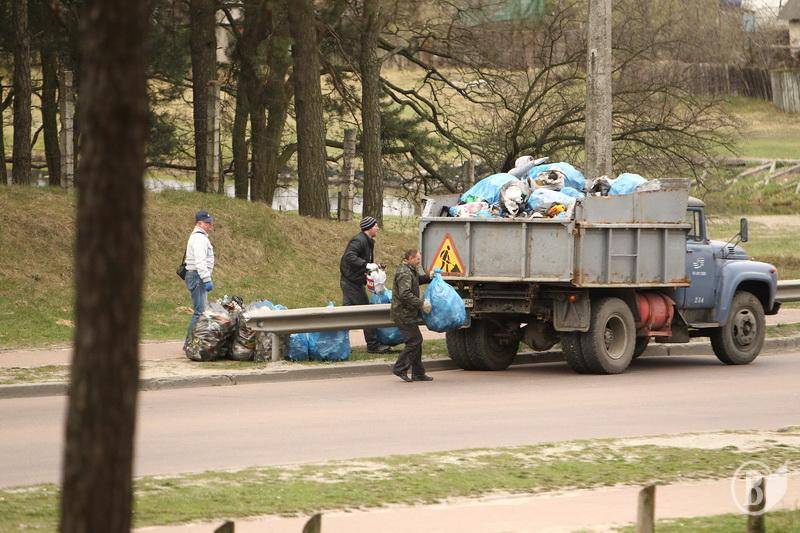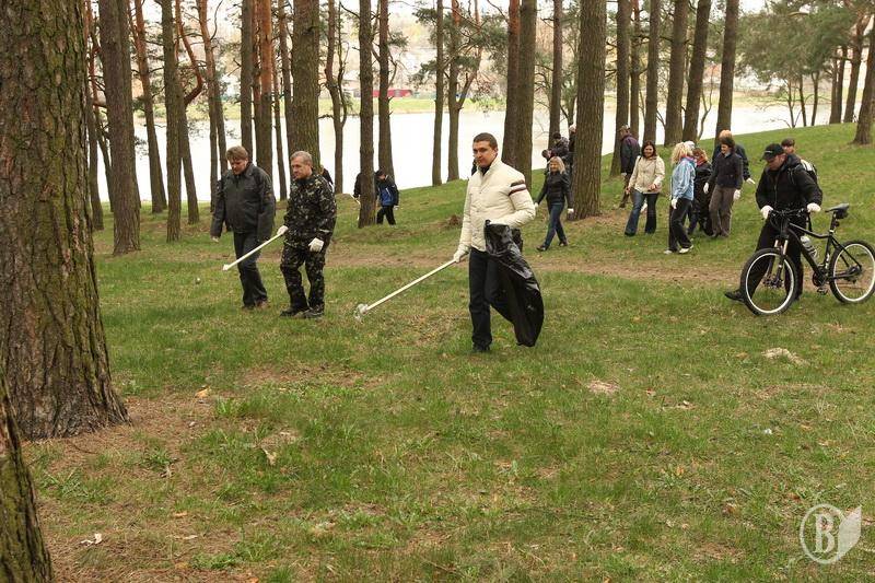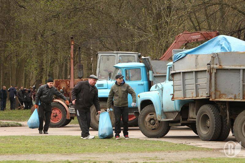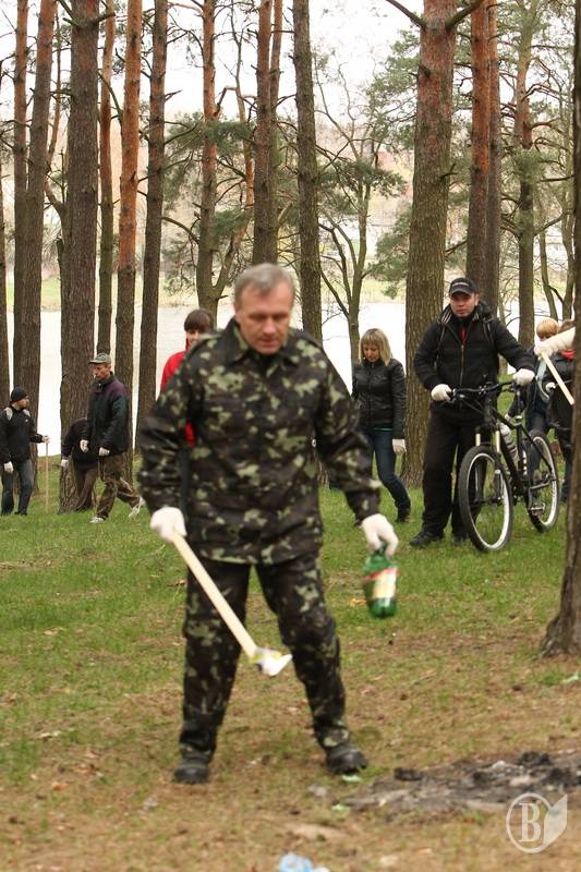 В кадрі – багато чиновників, керівників міста і області, активістів політичних партій, депутатів. Прибиральники працюють групами. Десятки пакетів зі скляними і пластиковими пляшками та різним мотлохом.