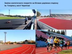 Значну увагу приділено й стану спортивних об’єктів області. Укладено синтетичне покриття на бігових доріжках державного підприємства «Олімпійський навчально-спортивний центр «Чернігів» (колишній стадіон ім. Ю. Гагаріна). Вартість виконаних робіт склала 2,5 мільйона гривень. Завершено будівництво універсальних ігрових майданчиків із синтетичним покриттям у чернігівських школах № 19, 27 та 29. А в Ічні став до ладу спеціалізований спортивний зал для занять боксом. Загальна вартість робіт перевищила мільйон гривень.