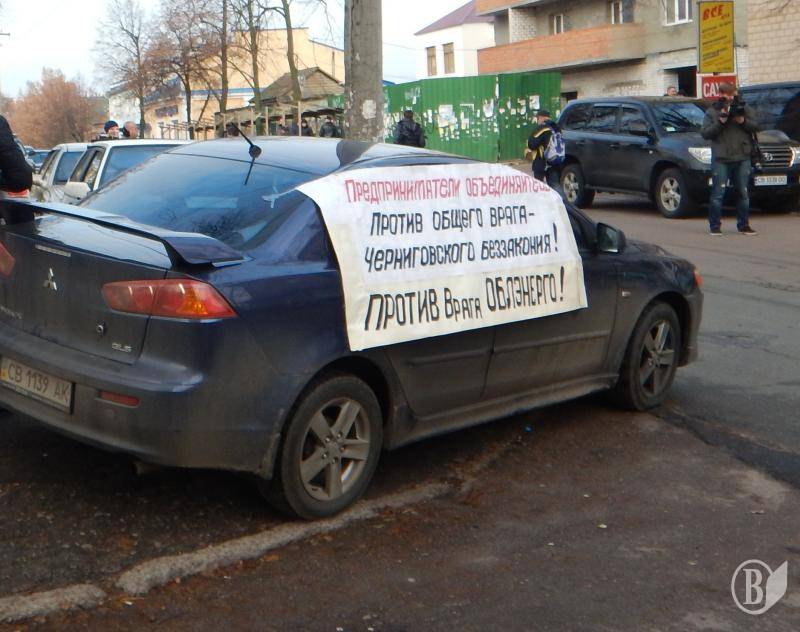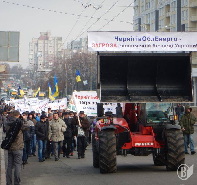 Организаторы протеста озвучили требования к «Черниговоблэнерго», рассказали, что эта компания принадлежит олигархам. Они, как овечьей шкурой прикрываются фирмами, которые зарегистрированы на Кипре, а в действительности принадлежат русскому олигарху Григоришину и украинскому – Коломойскому.