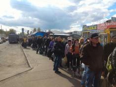 Київ, станція метро «Чернігівська». Понеділок, 16:00. На Прилуки стоять дві сотні осіб.