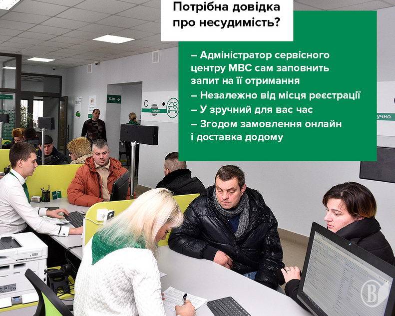 У сервісних центрах МВС також можна безкоштовно отримати довідку про відсутність судимостей.