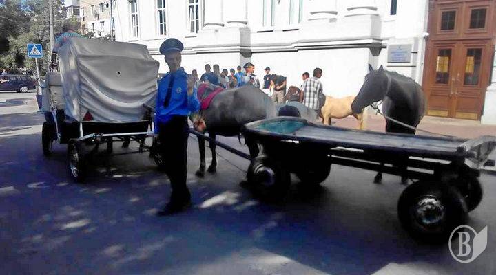 Протестуючі проти вартості проїзду в 4,50 грн привели до Чернігівської міськради коней і поні. З ними також неповнолітні.
