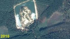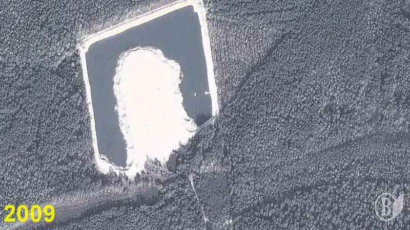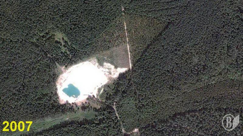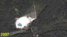 Судячи зі знімків з орбіти Землі, кар’єр на цьому місці утворено вперіод з 2007 до 2009 року.