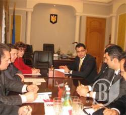Голова облдержадміністрації Володимир Хоменко, заступники голови облдержадміністрації Наталія Білоус, Олександр Бєльський та Олександр Шанойло зустрілися з делегацією турецької компанії Adocim Cement Concrete Indastry and Trading Co на чолі з її президентом Семом Саком.