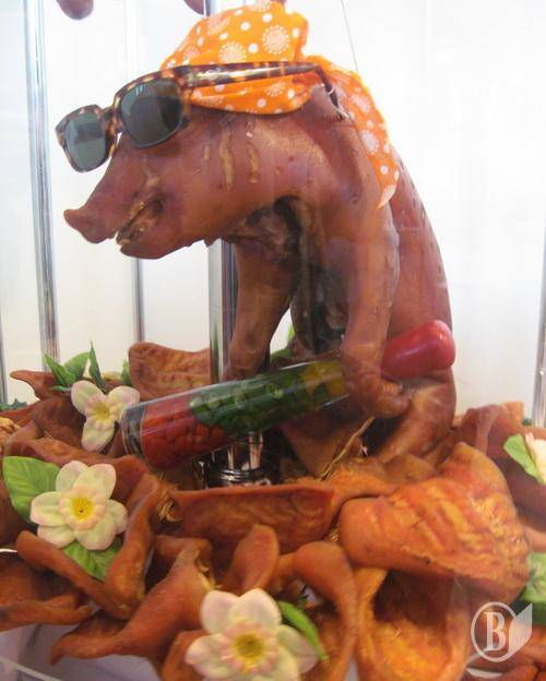На виставці також можна було побачити оренбурзькі хустки, хохломський розпис, півметрові шурупи, симпатичних білоруських дівчат з фабрики “8 Марта”, що демонстрували сучасний одяг і, навіть, порося в окулярах.