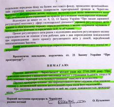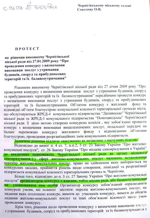 Об этом говорится в протесте первого заместителя прокурора Чернигова, текст которого попал в мои руки.
