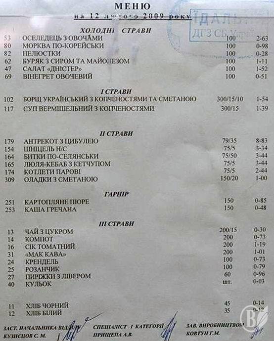 В ответ на удар мирового финансового кризиса Служба безопасности Украины, наверно заботясь о финансовой безопасности, разработала антикризисное меню.