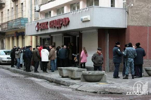 Сегодня, 12 марта, вкладчики банка"Надра"заблокировали вход в помещение центрального отделения банка во Львове (ул.Пекарская,7).