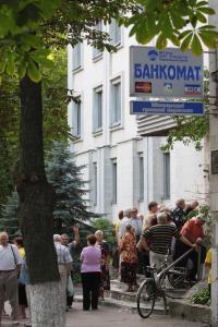 При цьому вкладників до приміщення банку не пропускають. Бояться, мабуть.