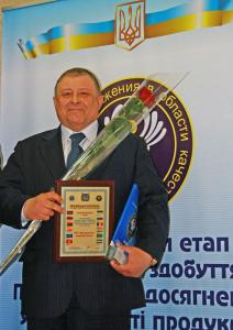 Голова наглядової ради підприємства Анатолій Ясько одержав нагороди з рук першого заступника Голови Державної служби технічного регулювання Владислави Хижняк та заступника Голови - Олексія Пшеничка.