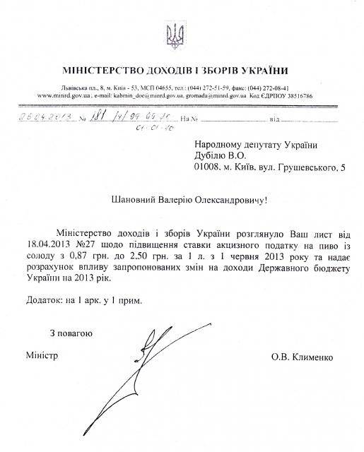 Валерій Дубіль зазначив, що існує і урядовий проект підвищення пивних акцизів, але він жорсткий, від нього може постраждати уся пивна галузь. Урядовим проектом передбачена і акцизна марка, і окрема ліцензія на продаж пива.