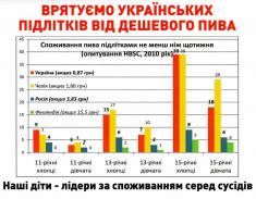 Чому пиво? Україна займає друге місце у світі за дитячим алкоголізмом після Чехії. Дитячі соки в Україні дорожчі за пиво.