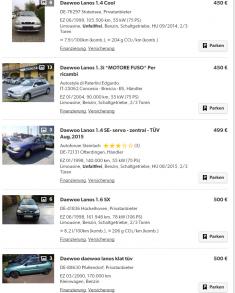 Ціни на «Ланоси» в Німеччині. Але українцям вільно їх купувати НЕ дозволяється. Мито в рази більше за вартість товару!