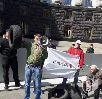«Селянин без землі – кріпак олігархів», «Поверніть землю громаді!», «Корупція – внутрішній агресор держави», - з шинами, плакатами та гучномовцем відстоювати своє право на землю під Кабмін приїхали мешканці сіл Базилівщина та Кошманівка, що на Полтавщині.