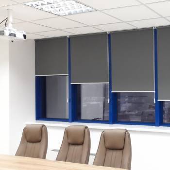 1. системы открытого типа – на открытый вал с направляющим механизмом наматывается ткань с утяжеляющей планкой, закреплённой к нижнему краю; полотно сматывается в компактный рулон, закреплённый на стекле или раме;