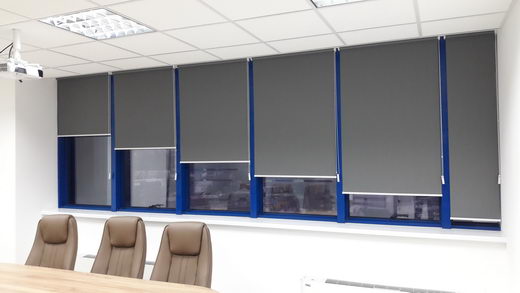 1. системы открытого типа – на открытый вал с направляющим механизмом наматывается ткань с утяжеляющей планкой, закреплённой к нижнему краю; полотно сматывается в компактный рулон, закреплённый на стекле или раме;