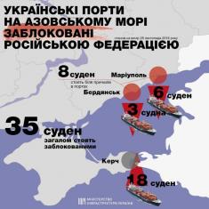 «Мета очевидна - блокування роботи українських портів в акваторії Азовського моря та поступове витіснення України з наших законних територій, що закріплені нормами міжнародного права», – зазначив Омелян.