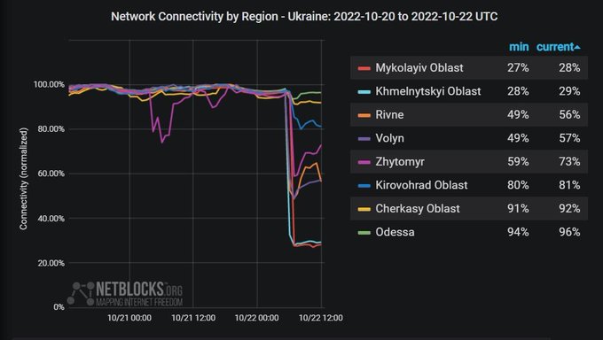 У суботу, 22 жовтня, російські війська завдали чергового ракетного удару по областям України. Внаслідок атаки були зафіксовані проблеми з доступом до інтернету.