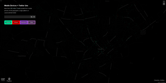 Скориставшись відкритими даними по геолокації в Твіттері, вони відзначили на карті власників пристроїв на базі iOS, Android і навіть BlackBerry. Результат можна оцінити за цією адресою.