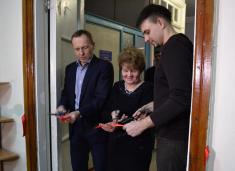 Урочисто перерізали червону стрічку міський голова Владислав Атрошенко і працівники бібліотеки.