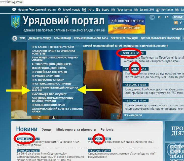 Тим часом сьогодні, 13 січня, офіційний сайт Кабінету міністрів України повідомляє, що Кабмін поки що працює над планами на минулий, 2016 рік.