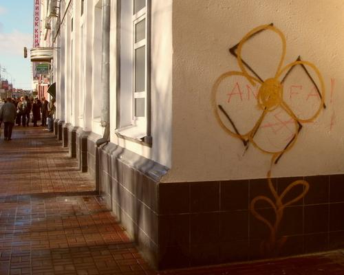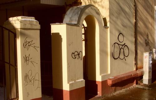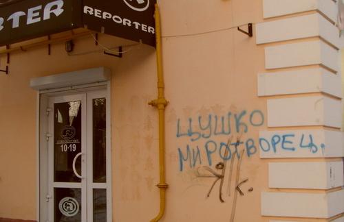 Поки готувався матеріал, "позначено" ще кілька фасадів буквально в півсотні метрах від міського управління і опорного пункту міліції. Отже, гра триває...