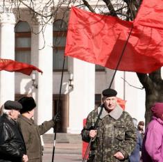 Учора в Чернігові деякі ліві партії провели черговий мітинг-протест. «Озброєні» вони були кількома червоними транспарантами та прапорами СРСР. Самі учасники мітингу мали великий вік і невелику чисельність.