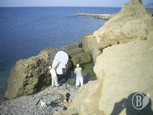Зйомки розпочинаються наступного дня, тим, хто у кадрі підйом о четвертій годині ранку! Треба зробити «мейк-ап», зачіску і о шостій виїзд на локацію. Місце зйомок за півгодини дороги у затишній бухті загубленій між скелями. «Сюди має прийти субмарина, яка доставить дівчат до Туреччини» - коментує Річард. Море чисте і кришталево прозоре, повний штиль, але досить прохолодно. Зйомки відбуваються організовано, місце розбито на сектори, для тих хто працює, для тих хто спостерігає, для підготовки і макіяжу. Щодо самого позування теж досить суворі рамки – не можна бути сильно відвертою, якщо в парі, не можна торкатись одне-одного.