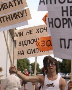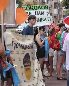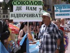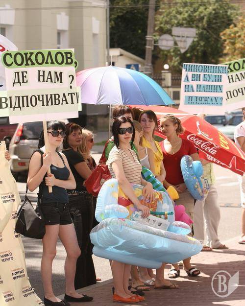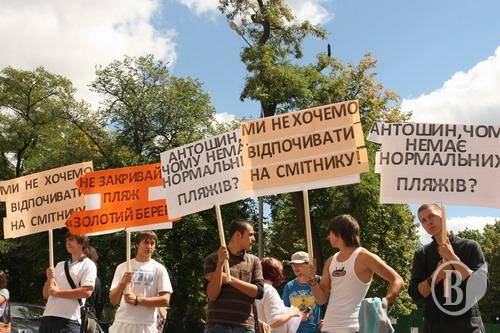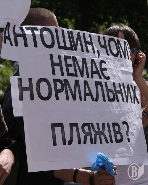 Крім того учасники акції тримали транспаранти з такими гаслами: «Соколов де нам відпочивати?!», «Антошин чому немає нормальних пляжів?», «Чиновники, а ви були на наших пляжах?», «Не закривайте пляж «Золотий берег» !