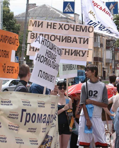 «Цього року міська влада не забезпечила жодних умов відпочинку чернігівців біля води. Хоча навесні чиновники з мерії і обіцяли нам «новий рівень сервісу» цього відпочинкового сезону. Але покажіть де він цей новий рівень?