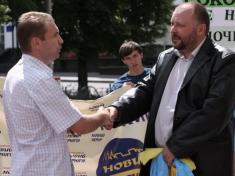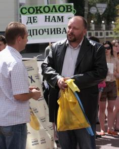 Як повідомляє прес-служба громадського руху, Вадим Антошин намагався відбутися відмовками. Він запропонував учасникам акції... пакети для сміття!