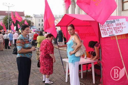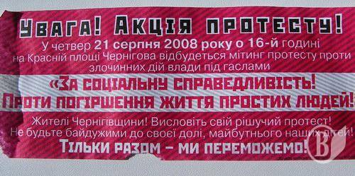 Вчера на Красной площади в Чернигове состоялась акция протеста. Она была анонсирована бумажками-наклейками без указания организаторов акции.