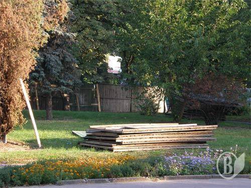 Чернігівські будівельники розпочали обгороджувати середину парку напроти будинку книги та школи №1. Щити ставлять ще відучора, з другої половини дня. Що саме тут збираються будувати, сказати поки що важко.