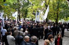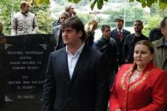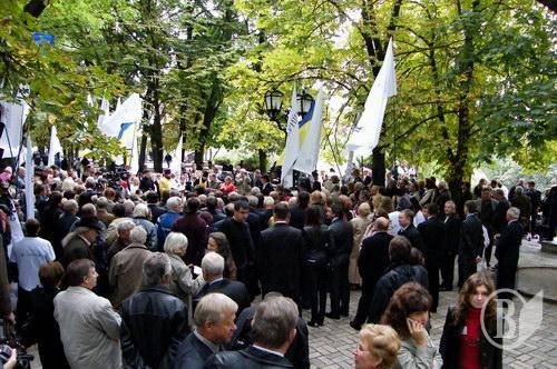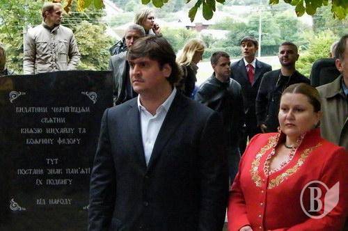 Відкриття каменю на місці майбутнього пам’ятника святим мученикам князю Михайлу та боярину його Федору відбулося на Валу, навпроти Катерининської церкви, біля гармат.