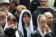 Священик освятив пам’ятний камінь, попередньо відслуживши молебен. «Дісталося» і присутнім: майже кожен відчув «дотик» до себе святої води.
