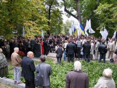 Доповідач також пошкодував, що Олексій Савченко звертається до громадськості російською мовою. Він висловив пропозицію поставити пам’ятник борцям за незалежність України.