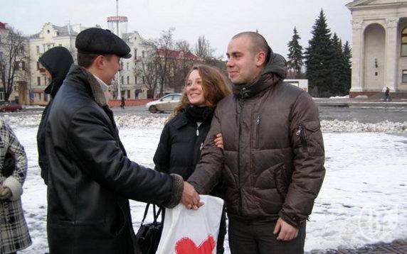 У День закоханих обласна молодіжна громадська організація ВМГО „Батьківщина молода” на Красній площі Чернігова провела акцію „Подаруй свою любов світу”.