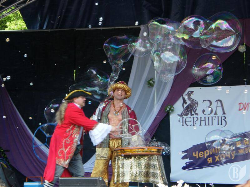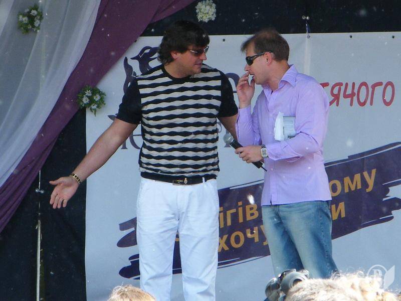 На завершення святкової розважальної програми для дітей у Центральному міському парку культури і відпочинку Олексій Савченко заспівав вже відому у його виконання пісню про «домик у реки».