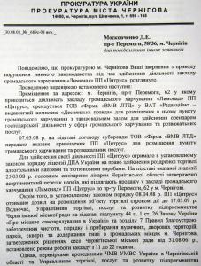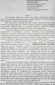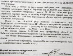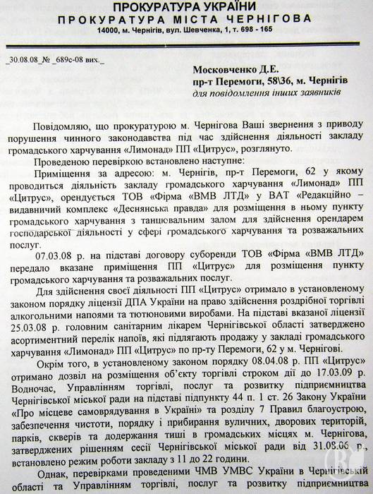 «Просим вас провести тщательную проверку бездеятельности органов городской власти и милиции по этому вопросу и принять исчерпывающие меры прокурорского реагирования» - пишут обиженные черниговцы прокурору Черниговской области С.Мирошниченко.